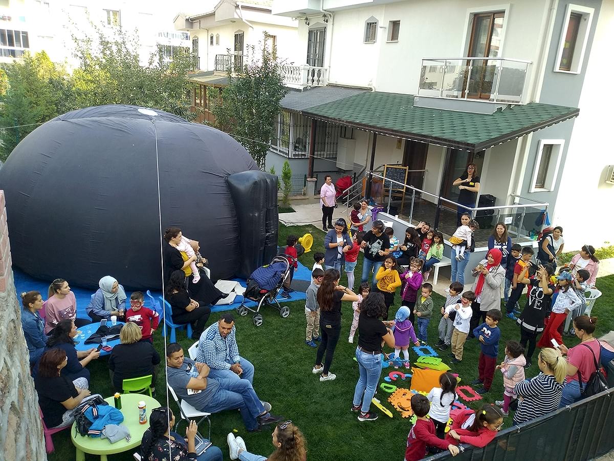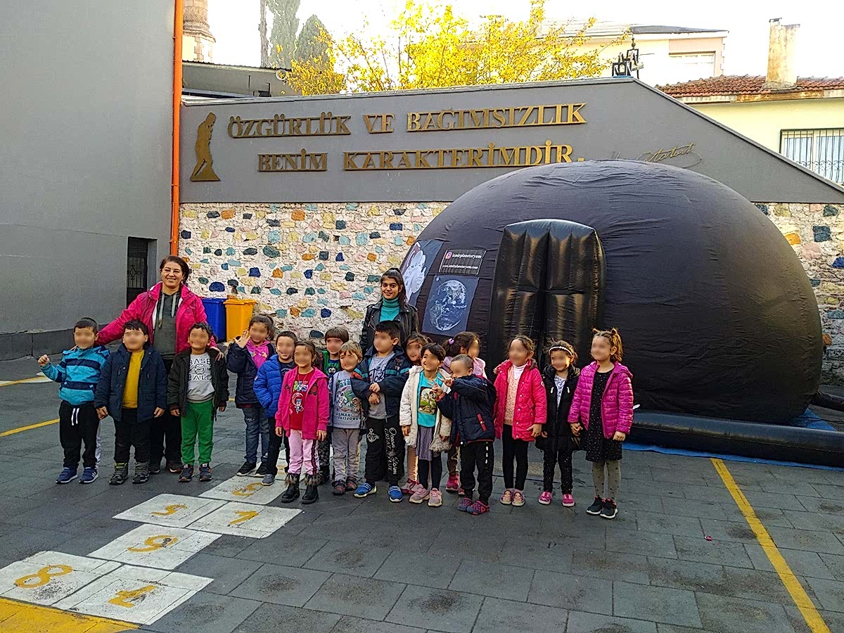 0 (532) 5238278Planetaryum (Uzay Çadırı) etkinliği ile çocuklarımızın hayallerine dokunuyoruz. Onları okullarından alıp uzayın gizemli ve heyecan verici atmosferine taşıyoruz. Yıldızları yakından görüp, “büyük” kavramının gerçekten büyük mü, yoksa küçük mü olduğunu öğreniyoruz. Su altına gidip oradaki yaşam hakkında bilgi ediniyoruz. Daha sonra geçmişe hızlı bir yolculuk yapıp, dinozorlar arasında gezintiye çıkıyoruz. Yolculuğumuz bittiğinde sizi aldığımız okula geri dönüyoruz. “Uzay teması”nı yaşayarak öğreniyoruz.